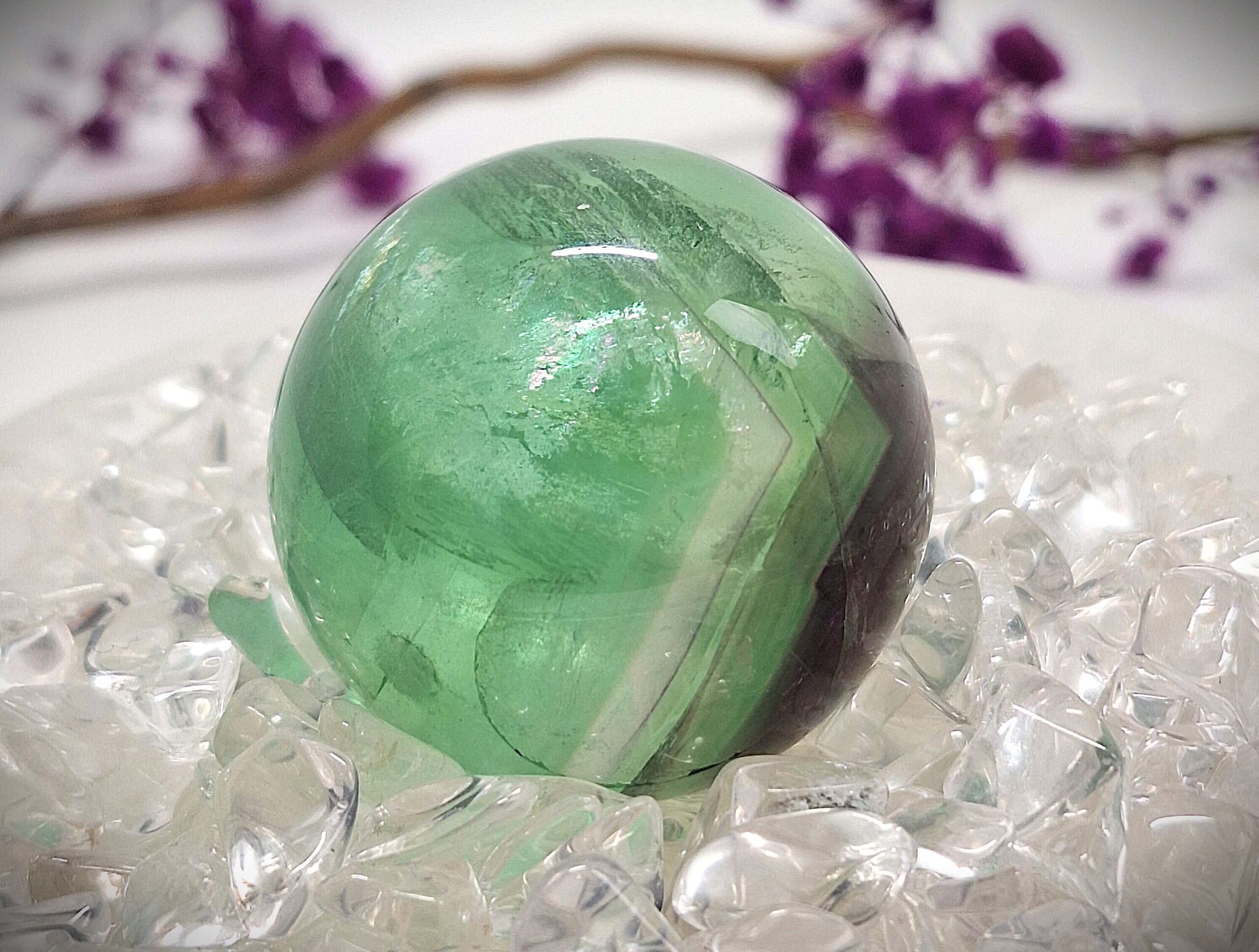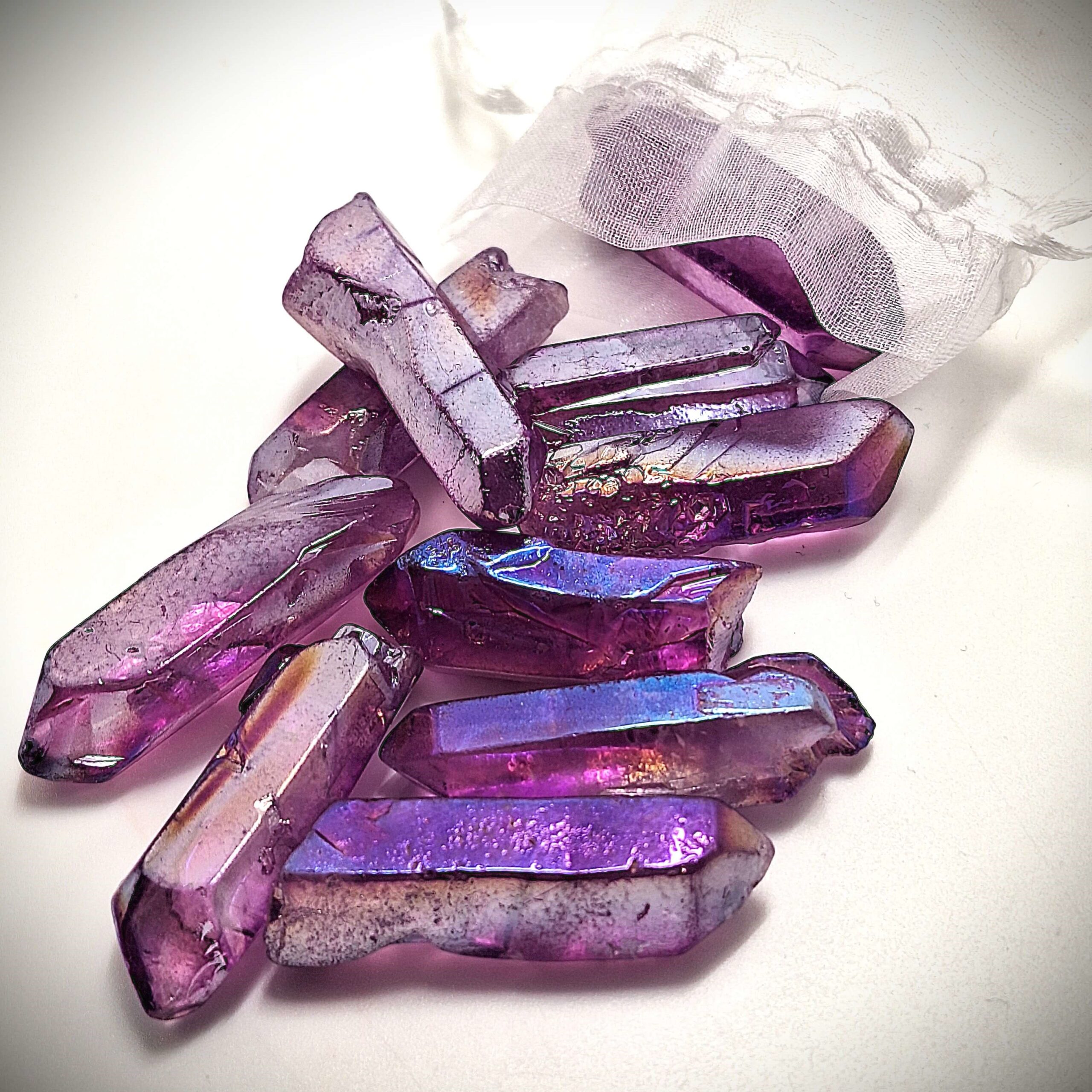 Der Bergkristall wird durch eine spezielle Bedampfung mit Edelmetallen veredelt und erhält dadurch seine einzigartige Oberfläche.